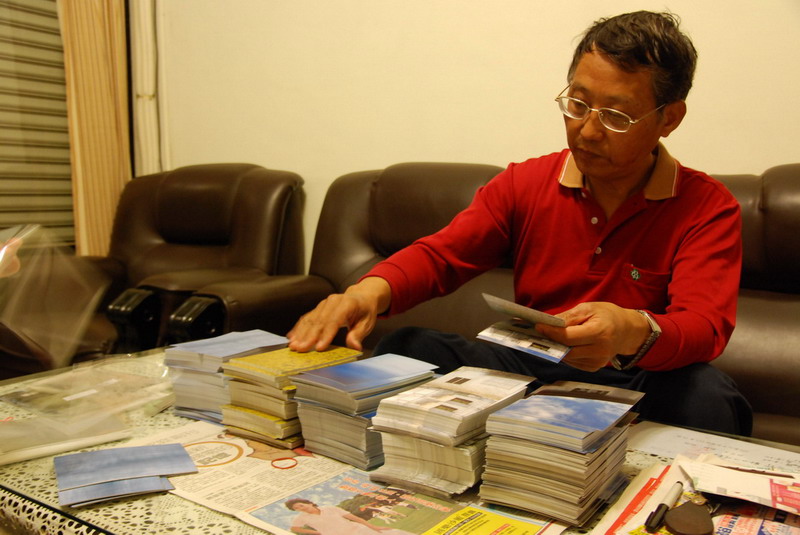 我爸負責把明信片抽出來,