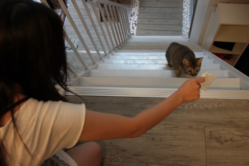 小女孩與小貓咪的遊戲